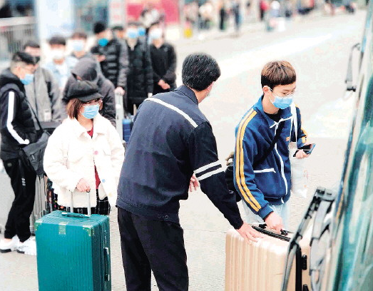 2月27日,桂林交通控股公交集团为了迎接各大院校学子返校,增开了电子科大花江校区、航院及雁山高校的返校定制专线 。图为桂林北站现场,在事情职员的组织下,大学生们有序乘坐定制公交车返校 。(泉源:桂...