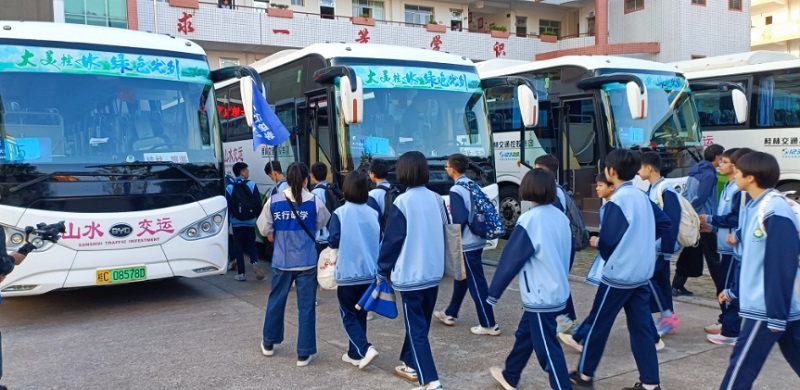 “请列位同砚系好清静带 ,我们准备出发了!”10月23日 ,阳朔山水公司旅运公司7辆48座新能源大巴车载着300余名师生 ,从平乐实验中学出发前往阳朔如意峰开启研学之旅。
