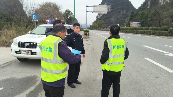为进一步消除国道321线交通清静隐患,包管群众出行清静,克日,桂林市阳桂公路治理有限公司团结阳朔县公安局交通治理大队,对国道321雁山收费站至阳朔路口段开展隐患路段专项排查行动,通过系统化治理周全提升蹊径清静水平。