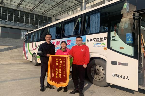 12月23日,桂林理工大学先生代表该校全体师生将一面印有“定制公交 便捷出行 护学路上 谢谢有您”的锦旗送至公交集团,对定制公交事情职员为学生考试保驾护航体现谢谢。