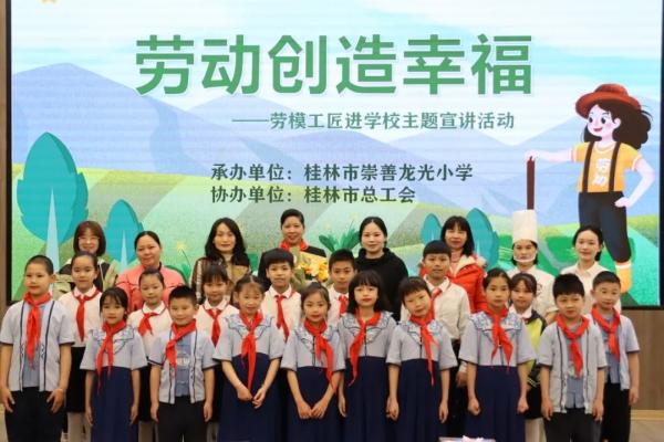 “五一”国际劳动节之际,由桂林市总工会主理的“劳模工匠进学校思政西席进企业”宣讲运动走进桂林市崇善龙光小学,桂林公交劳模夏四初受邀加入运动并为100余名师生上了一堂生动的思政课  。