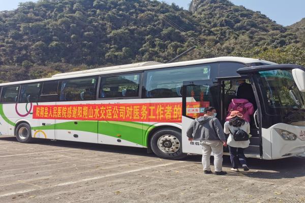 3月9日至10日,阳朔山水交运公司旅游停车场迎来了两批特殊旅客——他们是来自阳朔县人民医院的抗疫医务事情者。为谢谢“白衣天使”在抗击疫情中做出的无私孝顺,阳朔山水交运公司派出7台新能源大巴车为医务事情者们提供免费接驳服务,表达了对他们的高尚敬意。