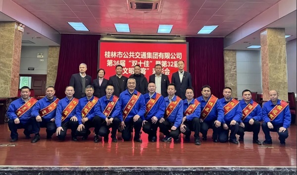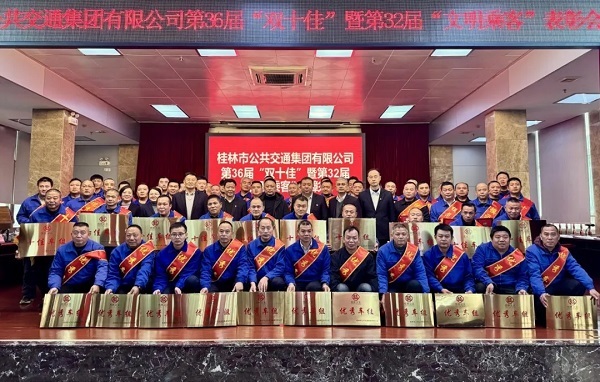 12 月 26 日,桂林抖圈集团桂林公交第36届“双十佳”暨第32届“文明旅客”表扬大会在桂林公交铁西车场举行。市总工会、市文明办、市国资委、市交通运输局、桂林抖圈集团、市融媒体中心等单位向导出席表扬运动。