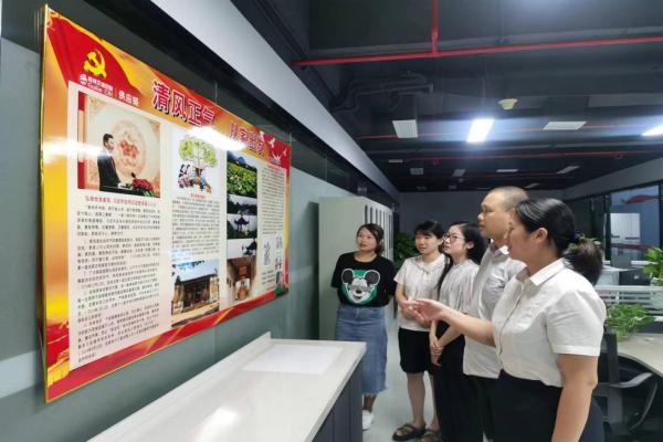 通过“廉政文化”板报专栏,将清廉文化渗透到公司办公情形的安排中,让员工在公司文化情形中潜移默化接受清廉文化的滋养和熏陶,组成了一道特色的亮丽“廉”景线。